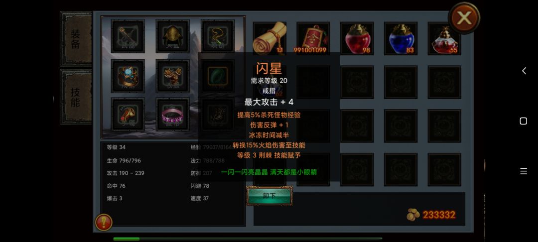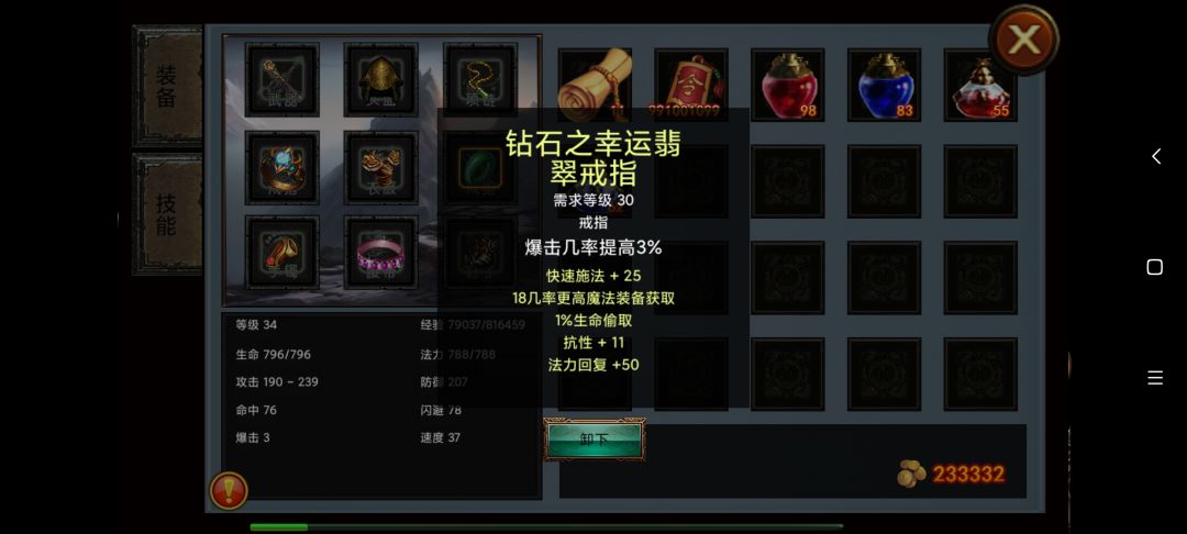 因为出了一个25施法速度和18暗金爆率的金色戒指,我感觉还不错,就各带了一个。