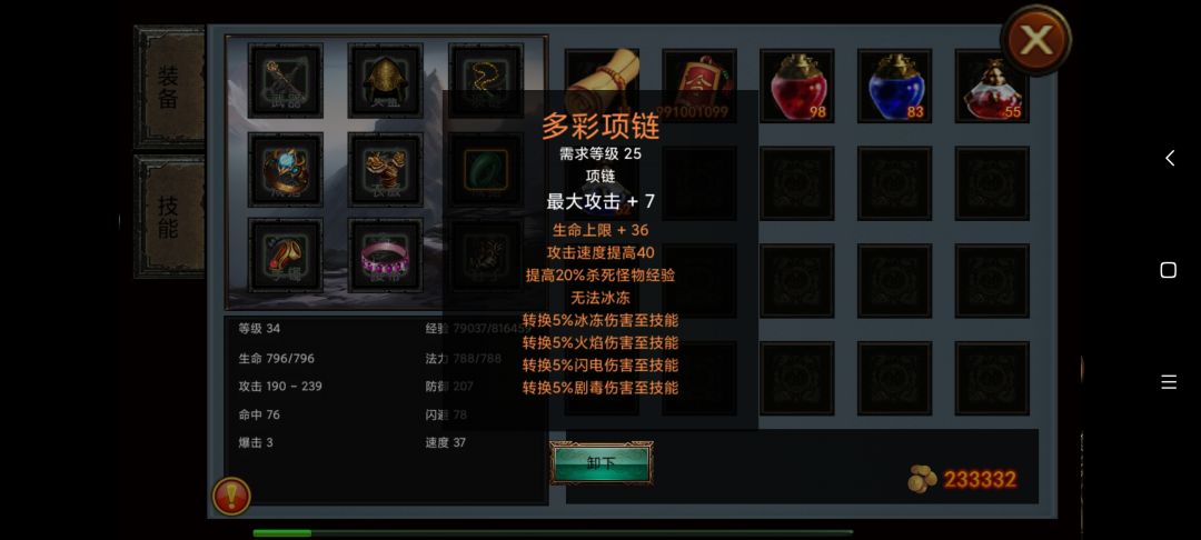 个人推荐多彩项链,那20%额外经验数据还是很可观的,很香,主要是30级之后升级非常慢。