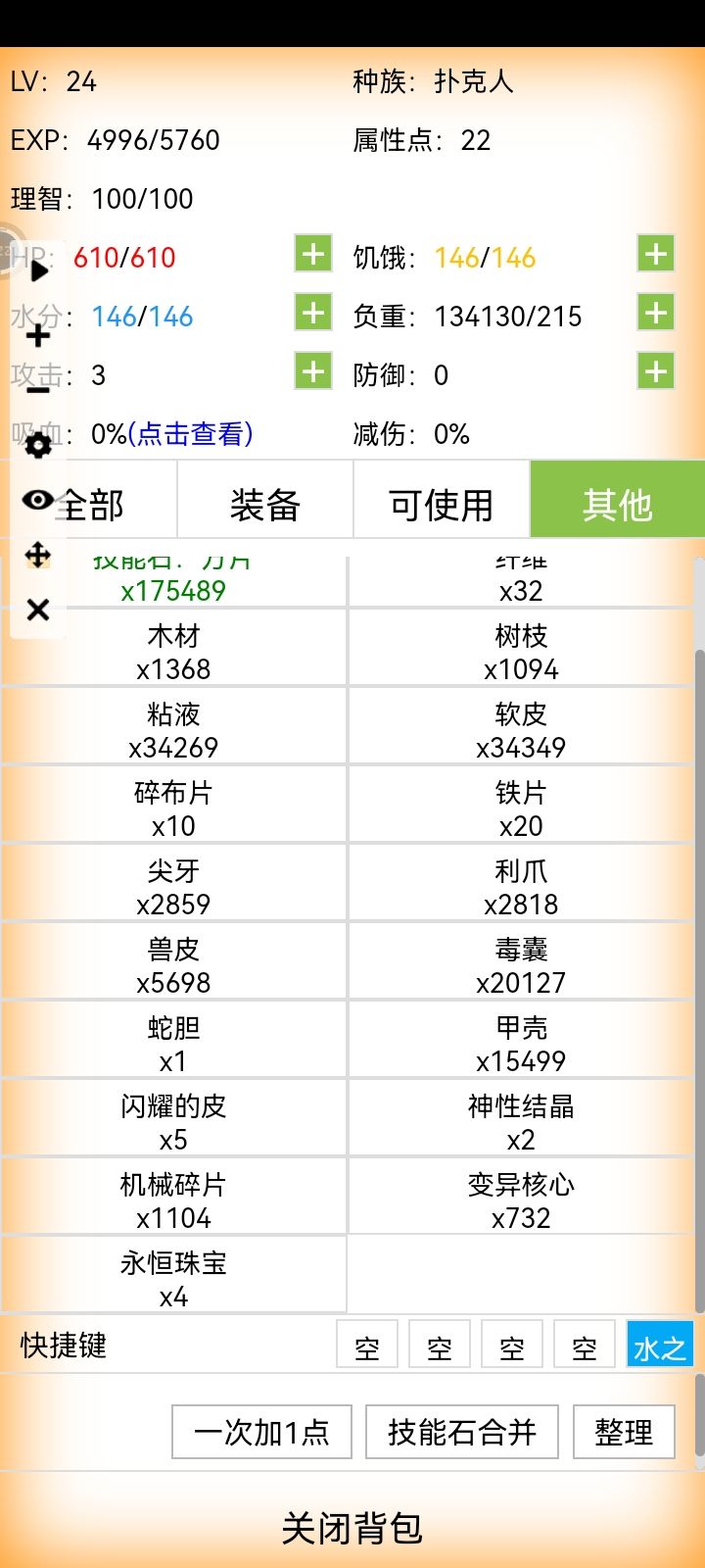 2、边开地图边搜集沿路纤维,做五万♠️,十万♥️、十万♦️、十万♣️(一晚上的量),关掉食物和水提醒,多关注血量,没血就找个低级怪biu♥️回满血。