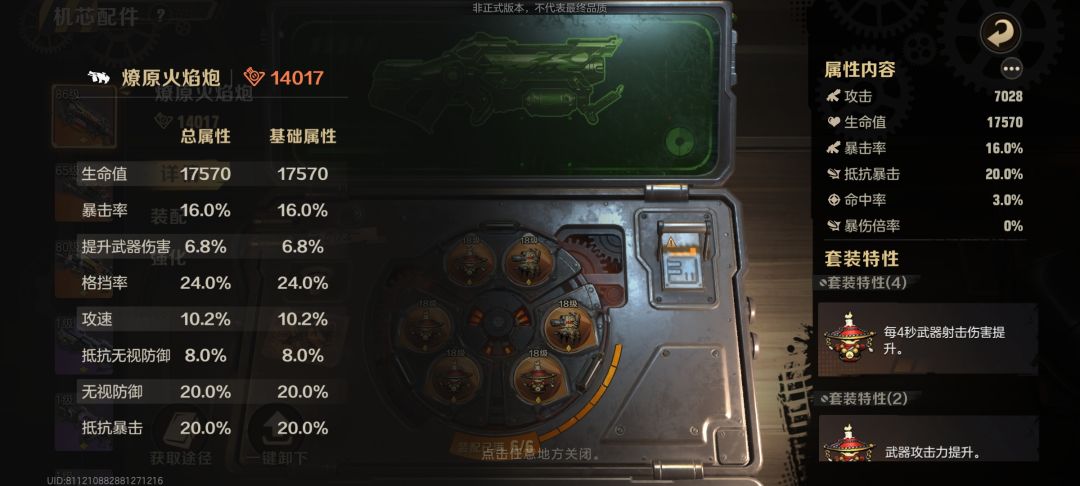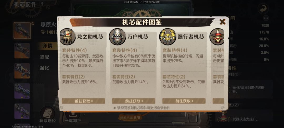 体力优先刷联合大于武器升级,因为第一个星期肝一点都能到困难2-1刷金色枪芯,而且每星期只有四十次机会打联合。争取把右侧攻击枪芯刷出来。