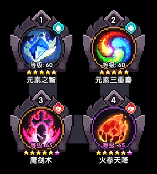 七星魂珠之后,魔剑不再依赖火焰弹来减魔剑cd,可以将其换成元素之智,使用时需要一直开关元素,配合雷弦刷魔剑cd。如果实在是缺蓝,就还是使用火焰弹。