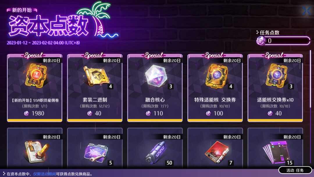 【资本点数活动开放时间】