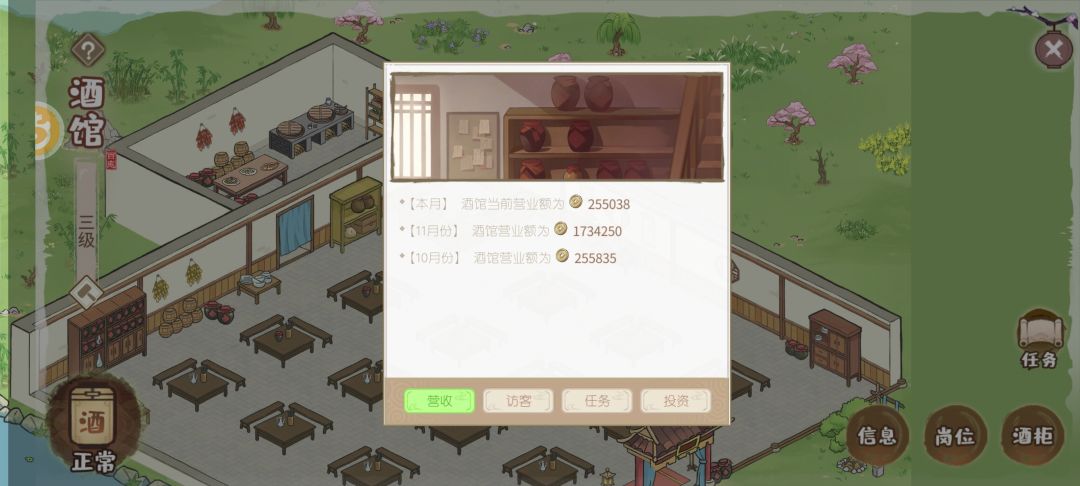四:数值问题,一些基础的东西需要很高的官府等级才能解锁,比如面粉。还有价格问题,酒馆卖酒很多都没集市贵。算到最后一开始的米酒居然是最划算的。