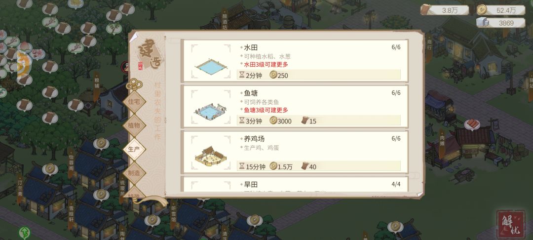 经济主要来源之一,上限跟住房一样,由这个建筑最高等级来决定。