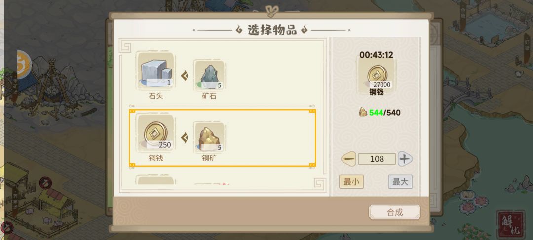 6.炼铜,银子也可以炼但我等级没到。5个铜矿等于250铜币。