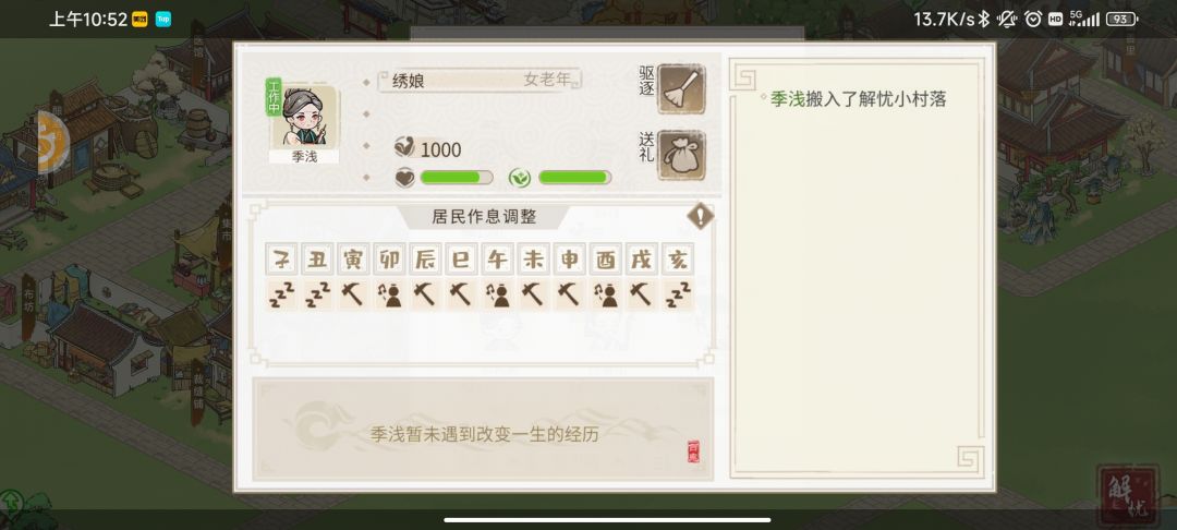 人物有幸福值跟健康值,满值都是1000。幸福值低于100会离开,健康值低于100会死亡。重要的人员一定要关注他。