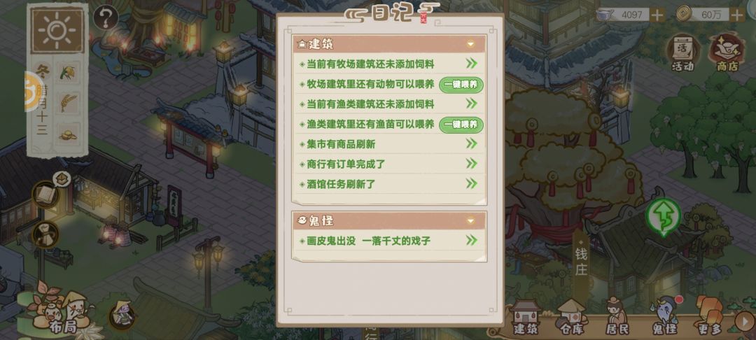 钱庄跟医馆前期不建议造,因为性价比太低,无法产生收益。钱庄那股份玩法太感人,而且没那么多闲钱。