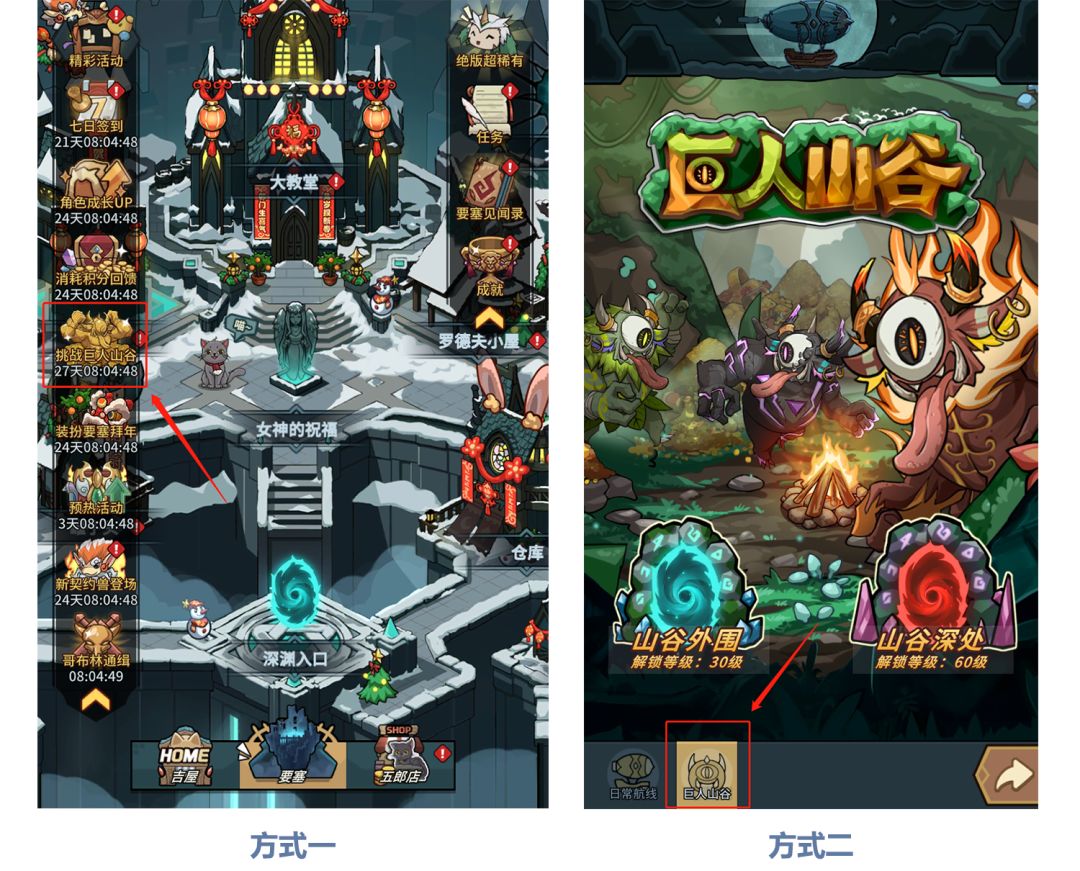 活动期间,提灯者可通过以下两种方式进入『巨人山谷』活动副本