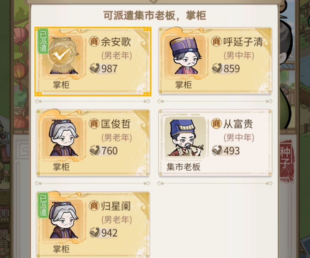 本人目前酒馆和集市掌柜能力相差不大