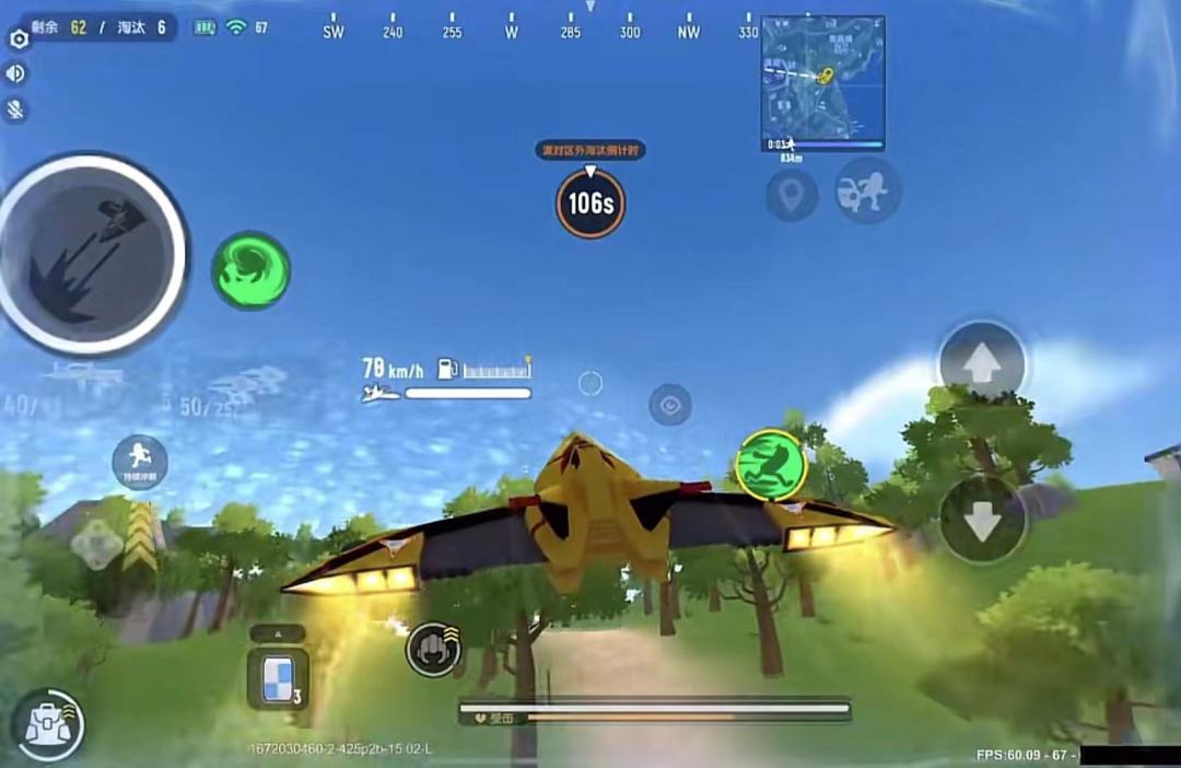 二、限时神秘道具:胜利飞燕号,可发射弹药,伤害大,但是操作难,只能控制摇杆来射击对新手玩家不大友好,在这里就建议新手玩家别拿了,拿了也是白给(除非你对你的技术非常自信)耗油量巨大,玩它的时候要提前捡几桶油,多捡几桶