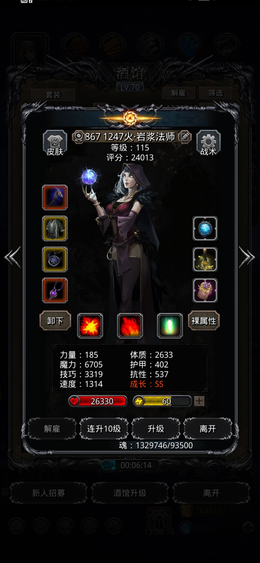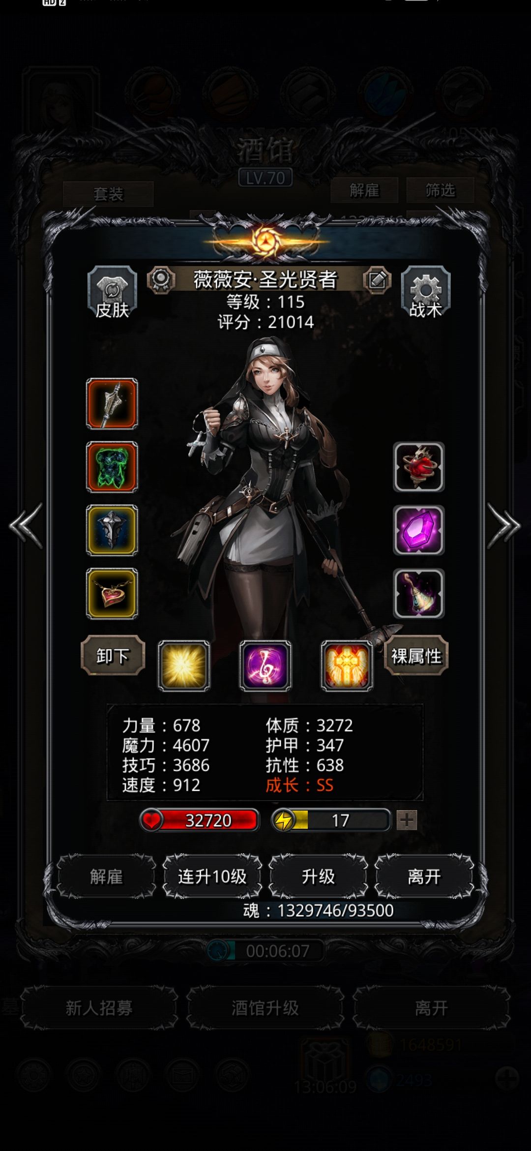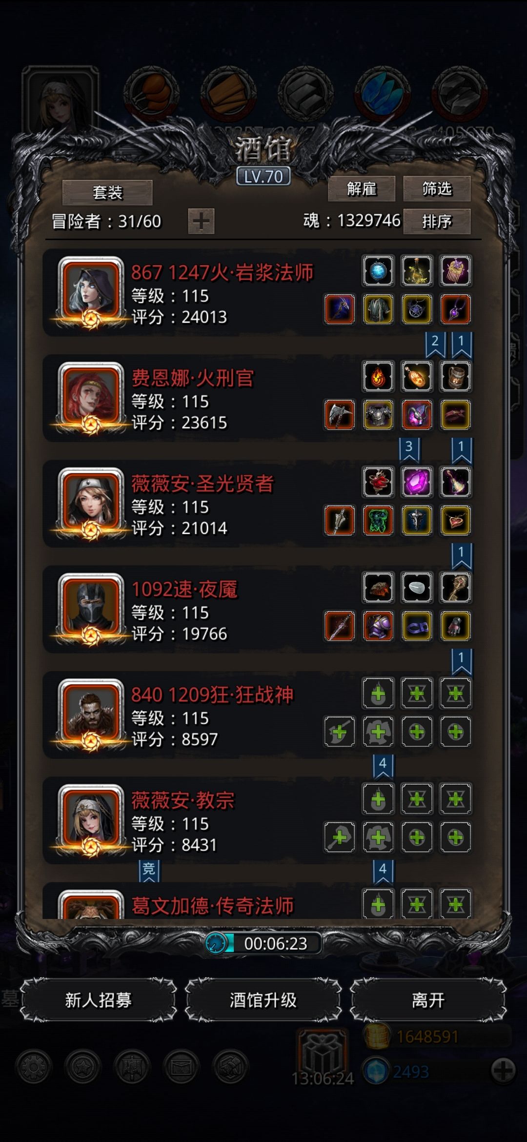 圣迹魔蛮祭都是80,刺客70,满锻,魔石均15命,人物等级均115(这里估计大多数人的圣迹和等级都比我高,因此配置中的大量氪金战利品换成自刷战利品在高等级高圣迹加持下属性基本差不多了)。