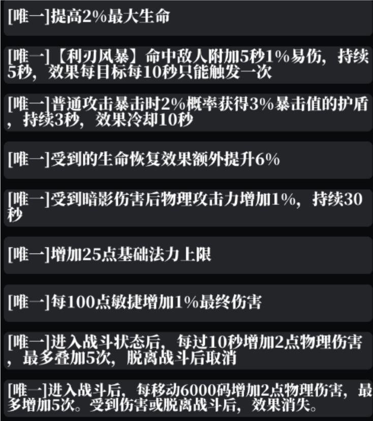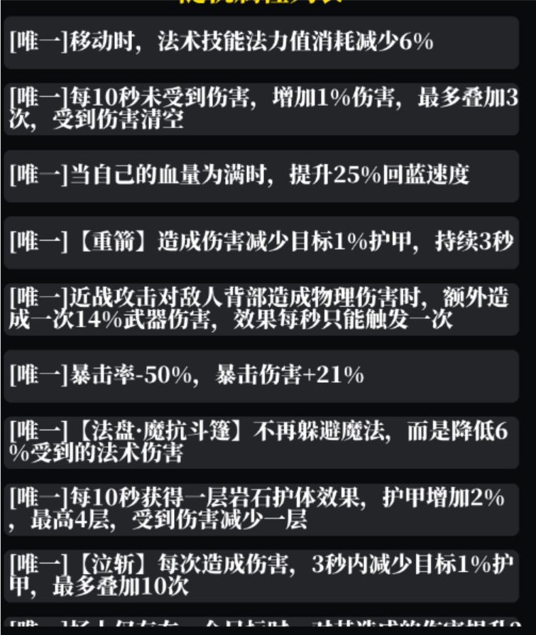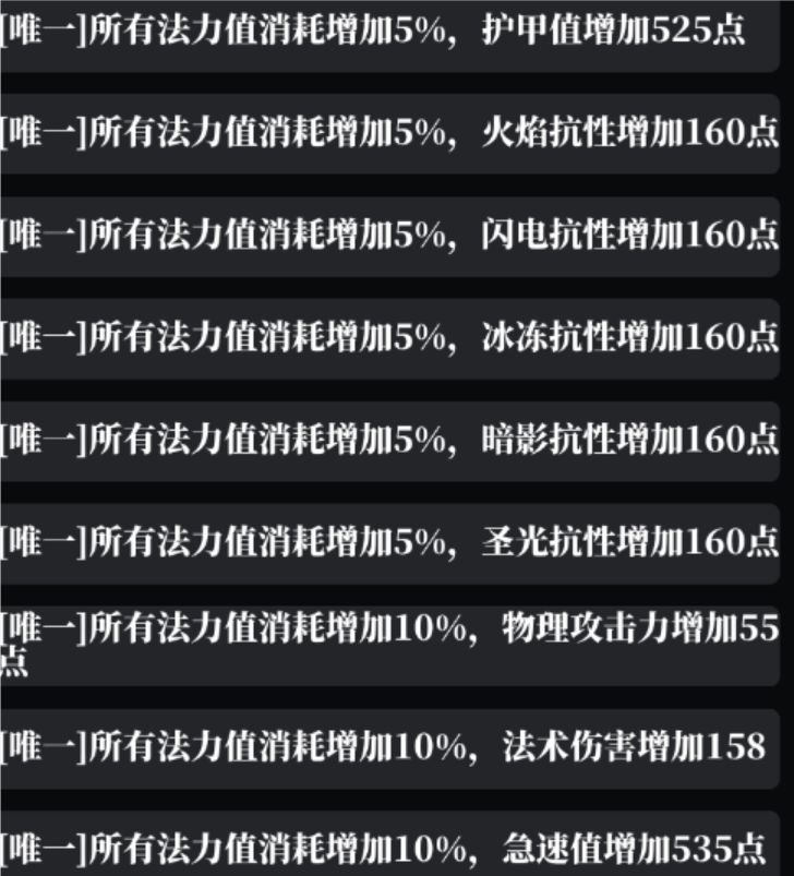 暗金散件词条