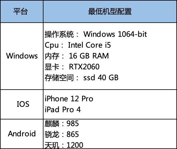 ✦PC:NVIDIA RTX2060或同等级显卡及以上,内存16G及以上,需要预留硬盘空间40GB以上。