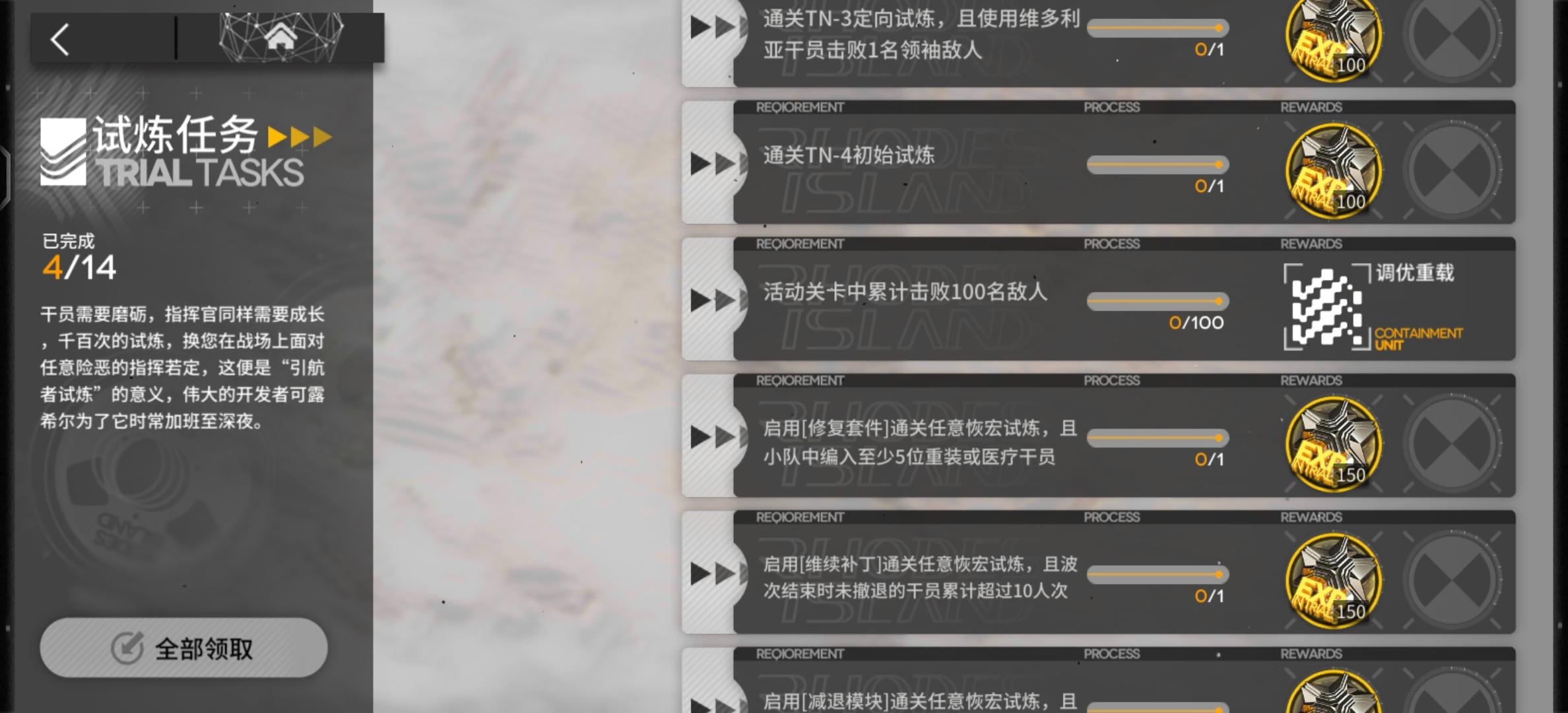 这第四个单元说要击败一百个敌人才解锁,我现在第一关前两个试炼都打完了还是一点没变