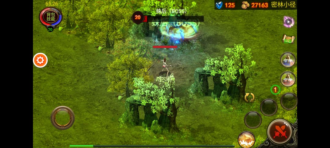 如果蛛后没有被树卡住冲过来了,迅速往地图上方跑到下图位置继续用可穿墙站撸,注意要站在蛛后的视线之外