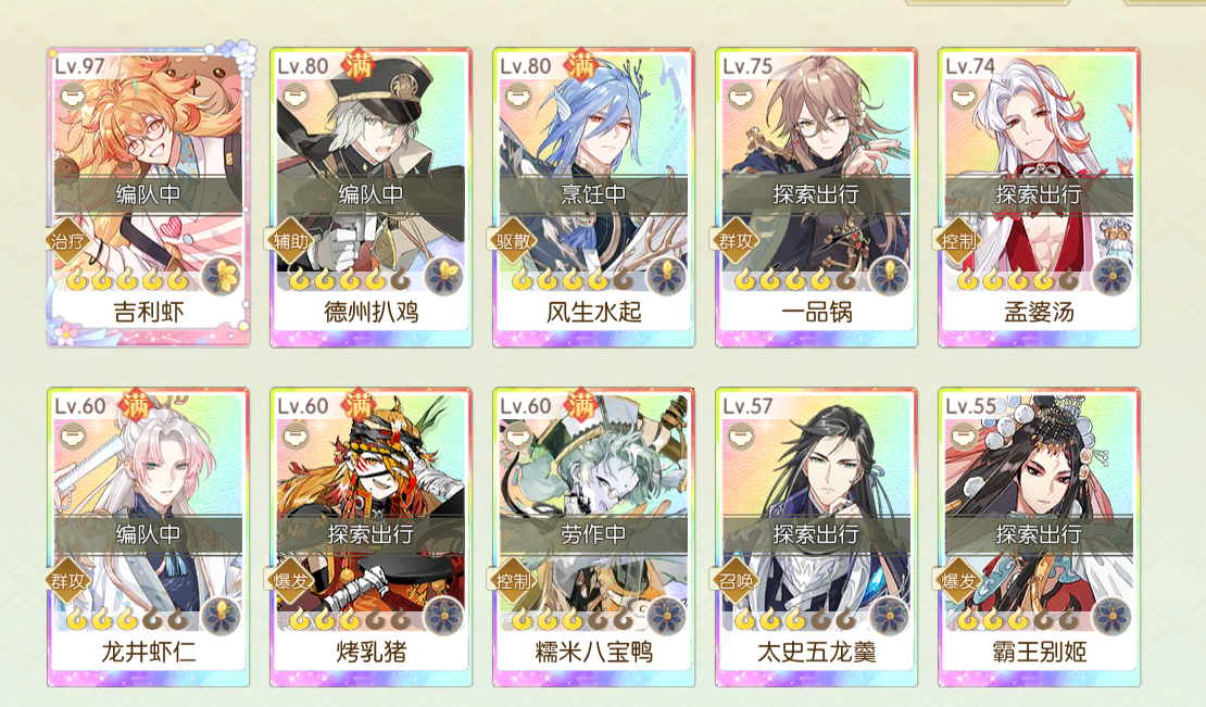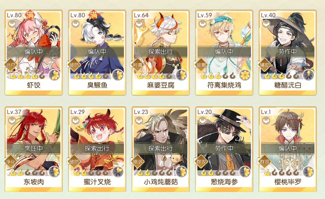 前段时间买来的号,有大佬帮忙配下队打膳具吗?另外有什么阵容适合前期推图和做活动的吗?