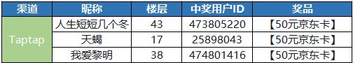 请以上玩家联系工作人员领奖,京东卡将通过线上发放卡密~