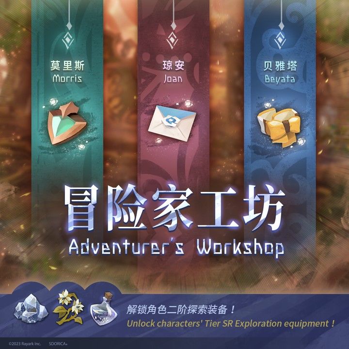 本期的冒险家工坊将开放三个角色(贝雅塔、琼安、莫里斯)的二阶装备,会有四个终点区域。