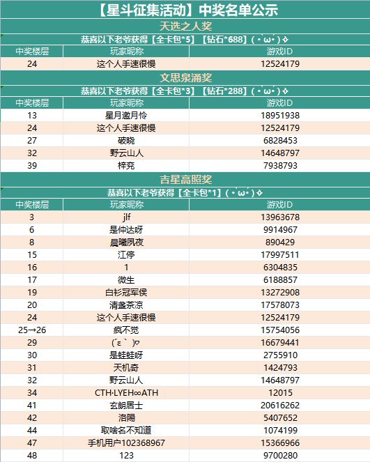 1.吉星高照奖:从回复中随机抽取20位大人送出:【全卡包*1】