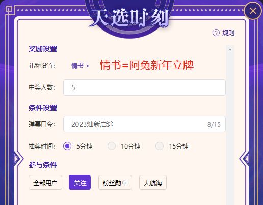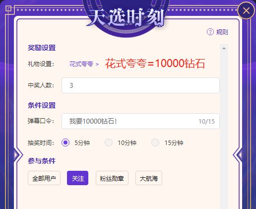 勇者们在观看节目时可参与「天选时刻」抽奖活动,抽得以下礼物道具的勇者即可领取相应的隐藏福利~!