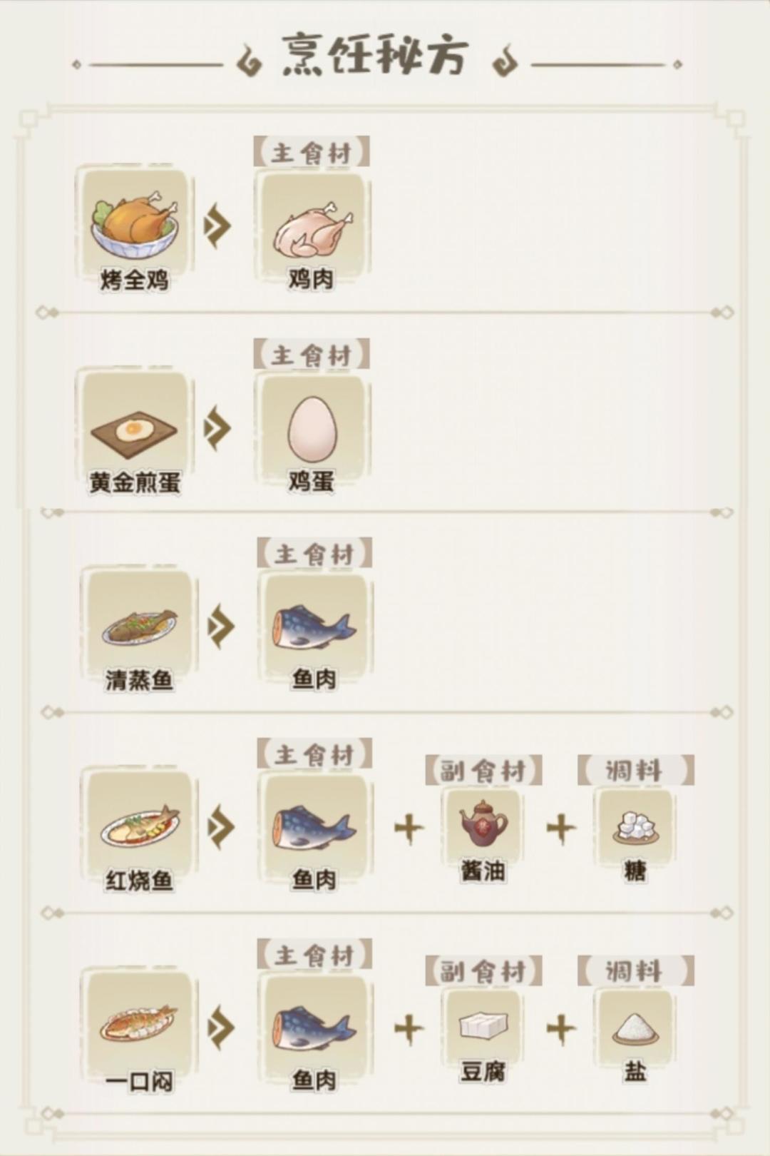 随着客栈等级的提升,收录到烹饪秘方的菜式会越来越多,接下来将公布前3级客栈烹饪的食材组合,希望能给到各位玩家更好的帮助~