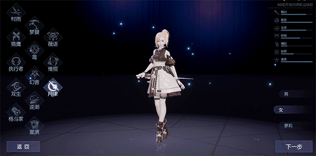 月律是以单手西洋剑作为武器的职业,单手西洋剑的剑士们通常举止优雅,充满了贵族感,月律也不例外。别看他们出剑姿态优雅,但每一个动作都充满了力量感,从拔剑的动作开始就能造成范围伤害。一技能【剑意凛然】为二段式技能,月律将会制造一个快速向前方移动的月之影,月之影会对穿过的目标造成物理伤害,并持续3秒。3秒内可以释放二段技能【利刃出击】,同时生成1点能量。