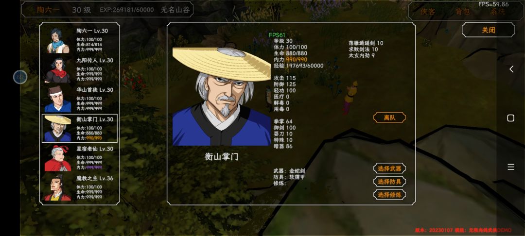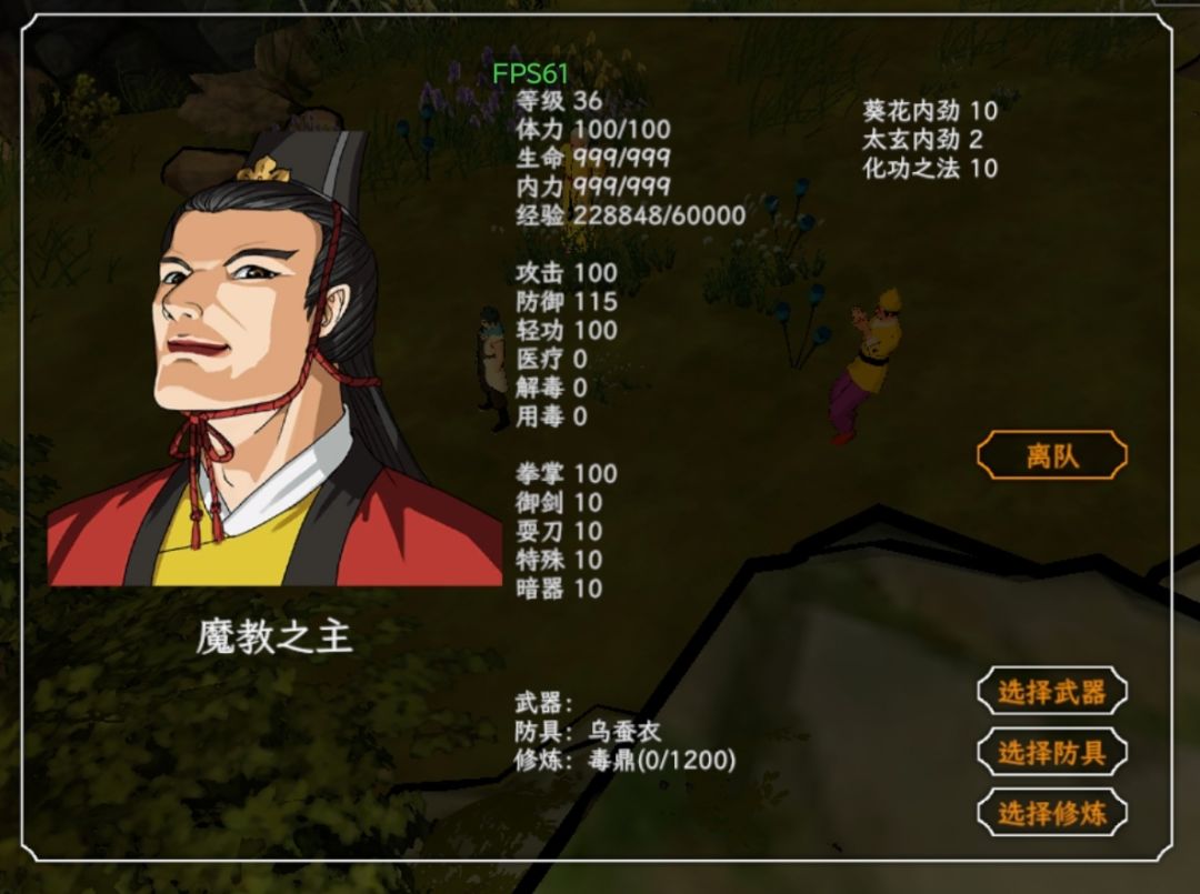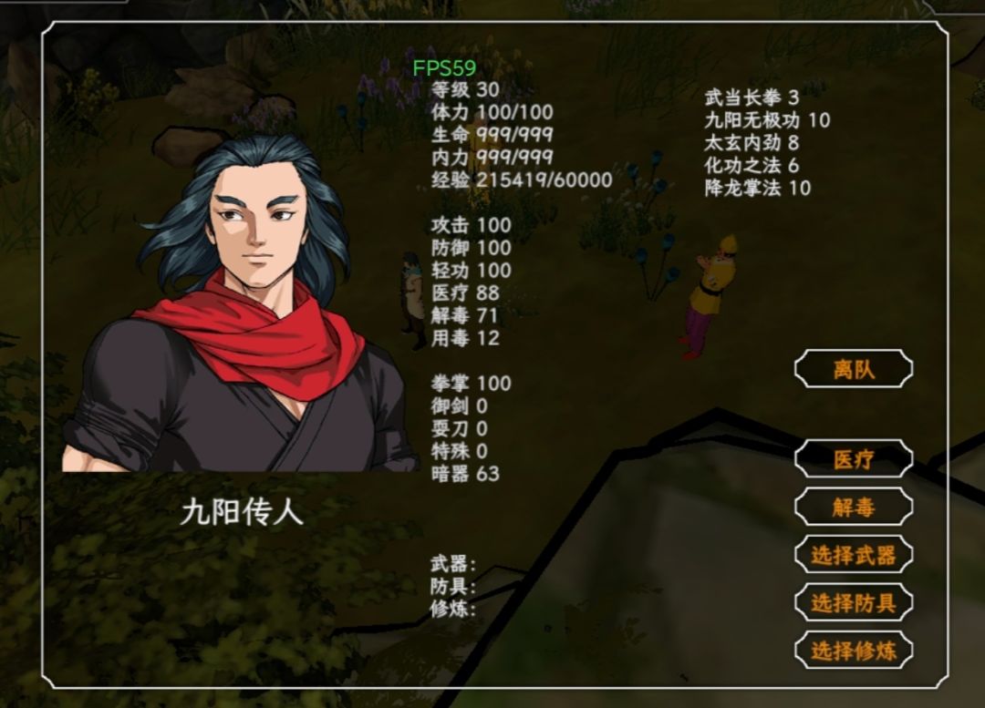 衡山和恒山掌门可以学双手,东方教主群伤第一,讲一下游戏核心,即内功和外功,如九阳,太玄升级可以增加属性,且攻击姿态是群伤,和东方一样,只是伤害只有一半,太玄和九阳了后面可以给人物修炼可以增加属性,补一下状态,特别是葵花,就是快。角色优先释放等级高的武功,且和距离有关,距离远放群伤,距离近就单体,所以人物初始技能不是越高越好,如果它伤害很拉那就有点难搞,学了高武他不放,。。。毒鼎只能算是锦上添花,回合结束别人才开始掉血,有点鸡肋,化功要贴着才放,垃圾。阵容不是很建议多九阳太玄这种,伤害不是很够,东方30层前也不一定遇到,所以群伤求败剑法很贴心,搭配双手更贴心了,差不多就是东方教主的伤害了,爬塔核心就是双手搭配群伤,单体降龙好用,但是能学双手的比较少,衡山掌门有个10级剑法,但是他学不了膈肌剑法,而且资质低学武功慢,华山首徒比他快,先拉起班底。如图