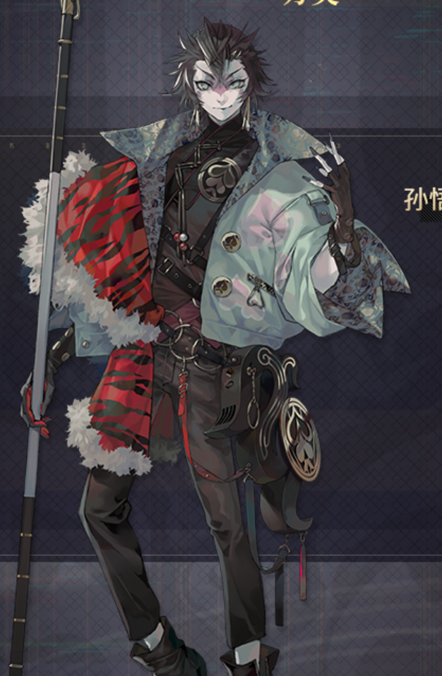 这种中西式结合的服装,加上现代嘻哈元素的组合,丝路朋克的风格被解释到位了!圈重点,衣服内衬的花纹是烫金中国风的,还有里面的衣服是对襟盘扣,搭配上红色的虎皮外衣,这个悟空有点hiphop~