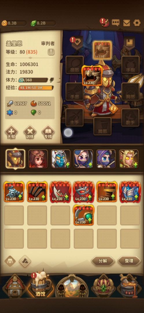 答∶我现在六职业满训练,还有8B+的金币和8B+的绿钻,是为什么?因为我从开始到毕业,始终都只给一个人物做装备,这时候又有杠精要问了,一个人物怎么可能过所有的关卡,没错,是不可能,我玩的是审判,只有火龙、抗爆鱼和两个蜘蛛过不了,其他的看词条基本都有机会过,我在毕业时,审判只有501级,是因为我所有的体力都用来一遍遍的试塔了,你们过不了直接随机,我过不了会换套路,比如专精、比如天赋,摸索出了审判在面对不同怪物时的不同搭配。虽然等级严重不足,但是爬完塔后巅峰精经验永久增加了1575%,半个月等级就追上来了,另外我的资源会非常充裕,唯一不一样的是我审判能过地狱25,而其他职业用审判的装备只能刷地狱24,仅此而已。那么一套装备我是怎么做到快速6个职业刷体力的呢?看视频∶