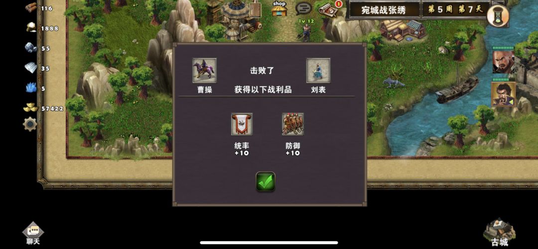 然后一直等到5周7刘表会出现在左下角,不管用哪个英雄打败刘表后,攻城打败张绣后便可以获得任务奖励