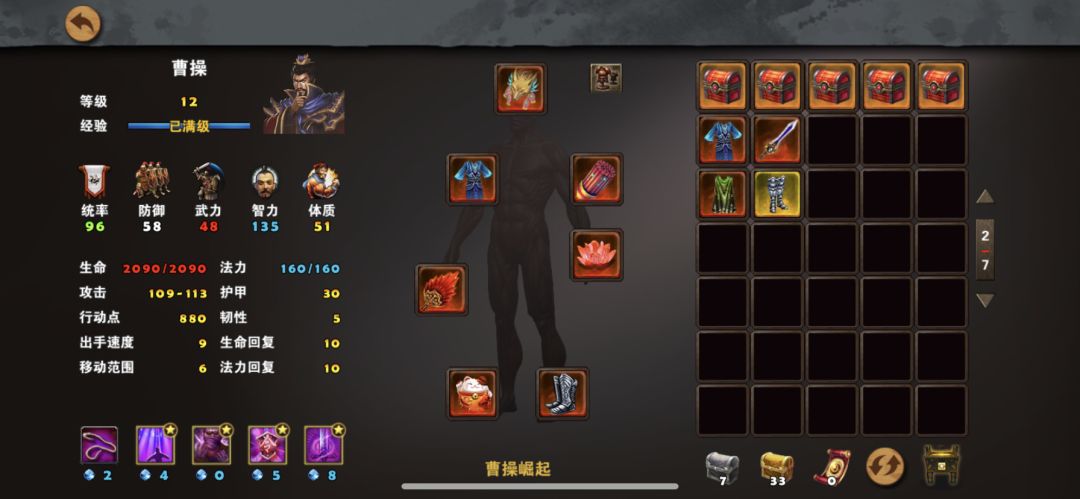 ❶、 第二章第三关曹操崛起特殊任务独眼夏侯完成方法:曹操装备如图所示,可以根据自己装备情况进行调整,