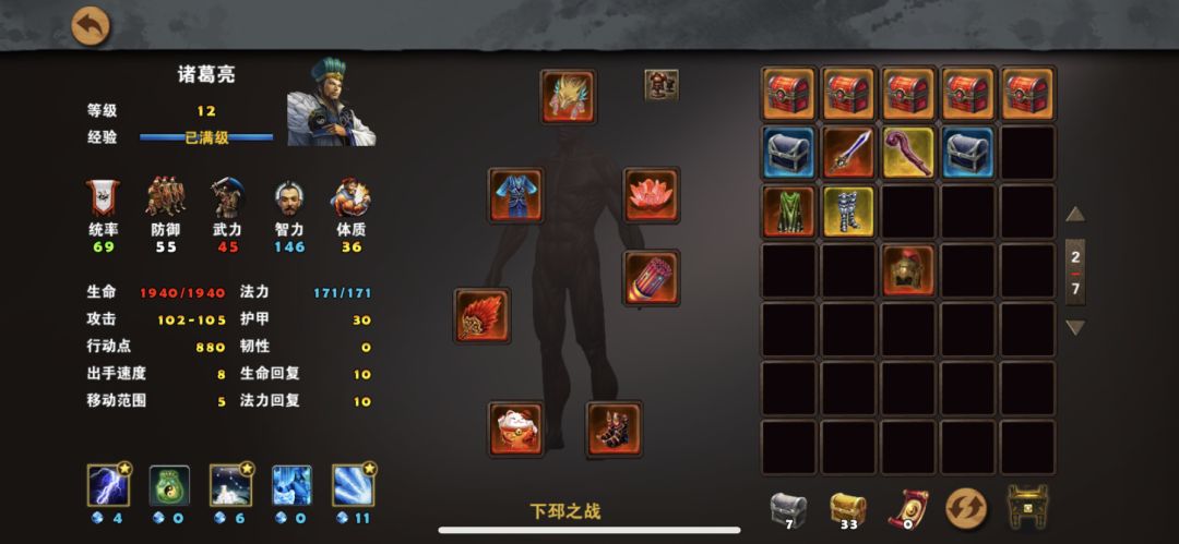❹、宛城站张绣特殊任务鬼才郭嘉和特殊任务击败刘表打法详解:曹操、典韦装备如图所示,可以根据自己装备情况进行调整,1周3曹操出现,然后典韦一路保护曹操走到右下角,然后典韦对话郭嘉可以九折购买郭嘉英雄令,再次对话郭嘉便可以完成任务