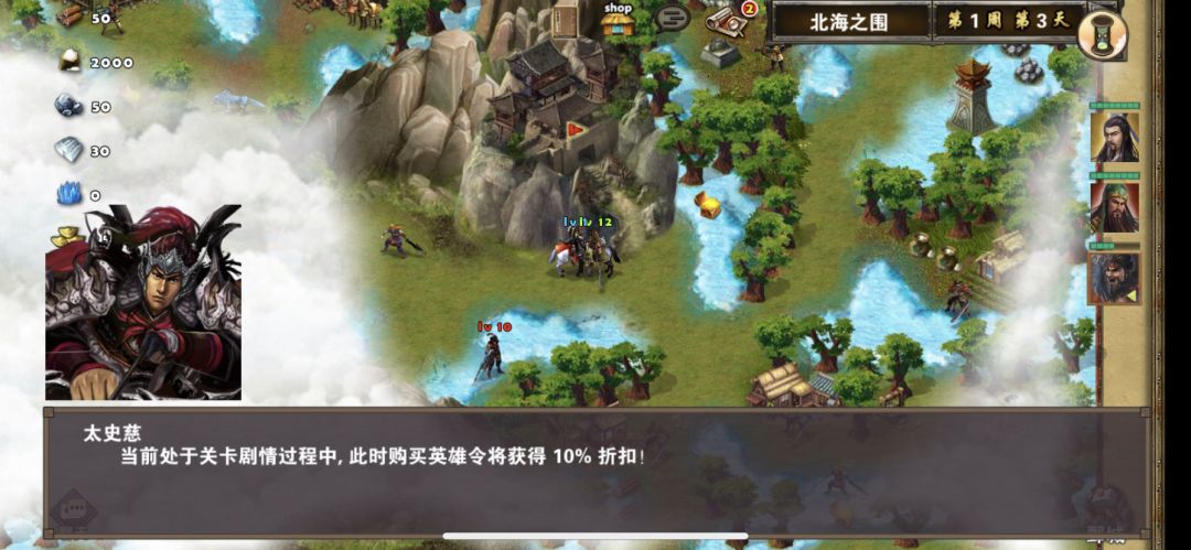 开局张飞访问旁边废弃军营,可以使用战术卡威震四方和虎翼阵,然后张飞往右往下一路打过去,打掉右边三个堵路小怪后然后去攻打甄城,打败荀彧后,太史慈变会出现在甄城旁边,我方任何一位英雄过去对话太史慈可以九折购买太史慈英雄令,再次对话太史慈便可以完成任务,获得奖励