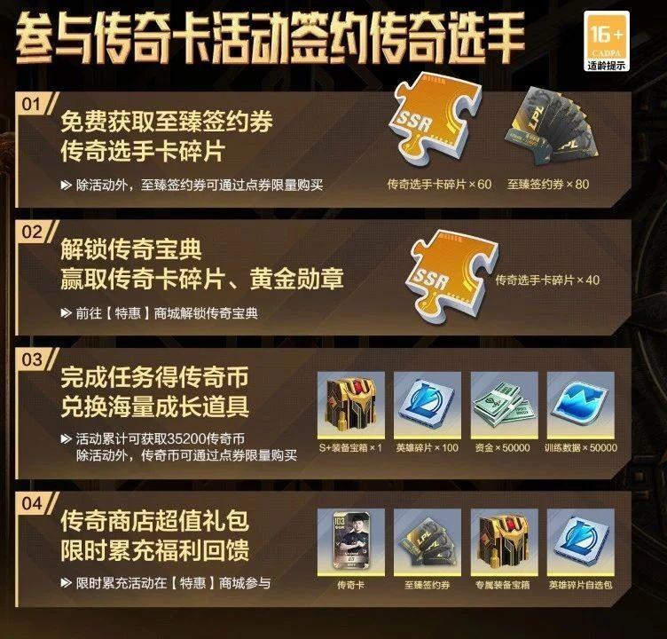 玩游戏享传奇好礼,至臻签约券、传奇选手卡碎片免费领!