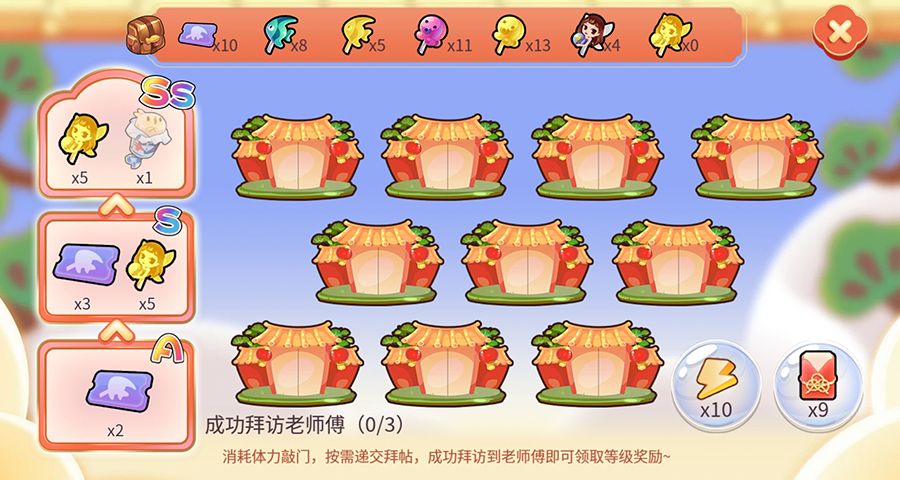 每天进入活动会赠送行囊,使用行囊进入<去学艺>环节。