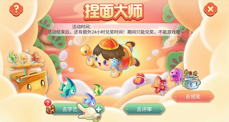 每个学艺环节任务不同,可获得不同类型的面人,鱼友们可以根据需要去完成学艺内容。