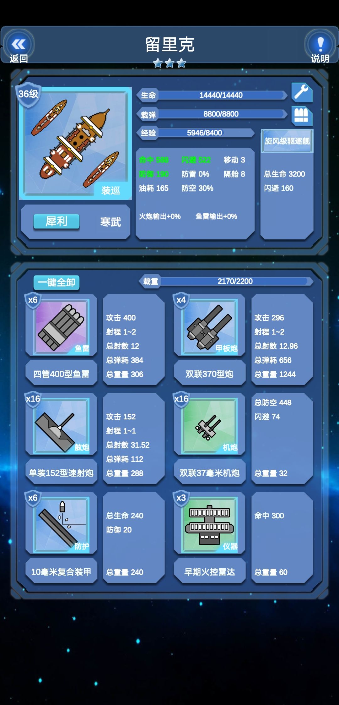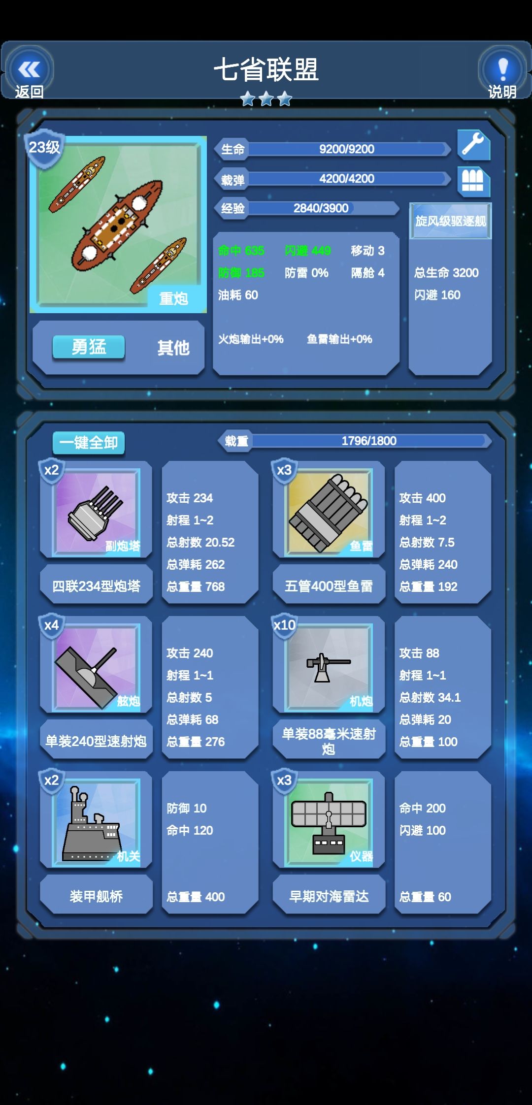 同样身为还在用古董炮的老式装巡,这玩意不但有强大的炮击和雷击能力,甚至连防御也轻松堆到了230,除了美系装巡几乎没有防御比他高的了。