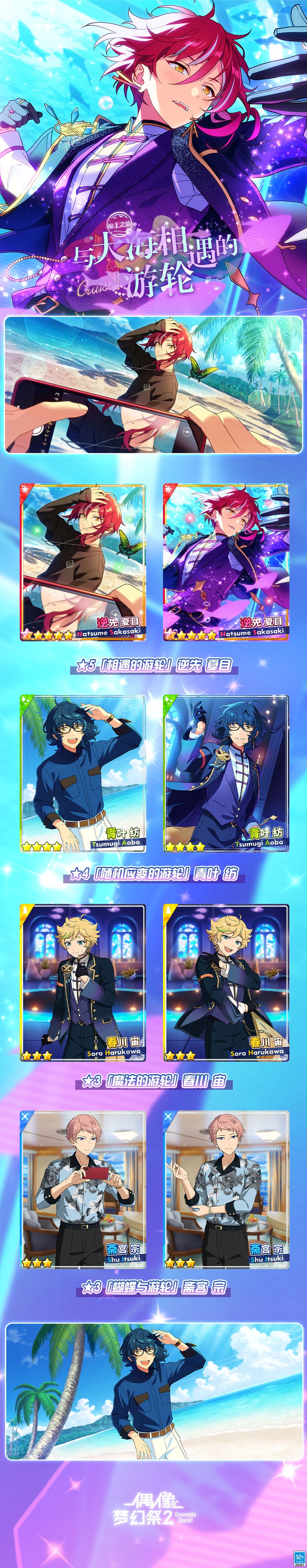 此外,通过演唱会收集【游轮之旅丝带】,在丝带兑换所中可兑换【钻石】、【活动回忆硬币】、【活动限定服装图纸】、【ES硬币】、【各色宝石】多种道具。