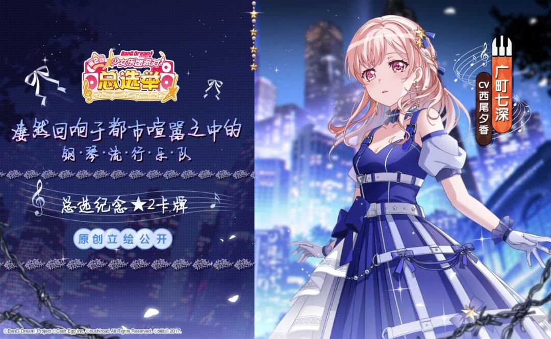 《BanG Dream! 少女乐团派对!》简中版第二回总选举获胜乐队——“凄然回响于都市喧嚣之中的钢琴流行乐队”成员——广町七深原创立绘公开!