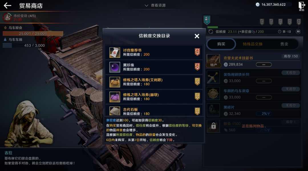 前期直接把蓝色物品全部买光,可以提升信赖度。