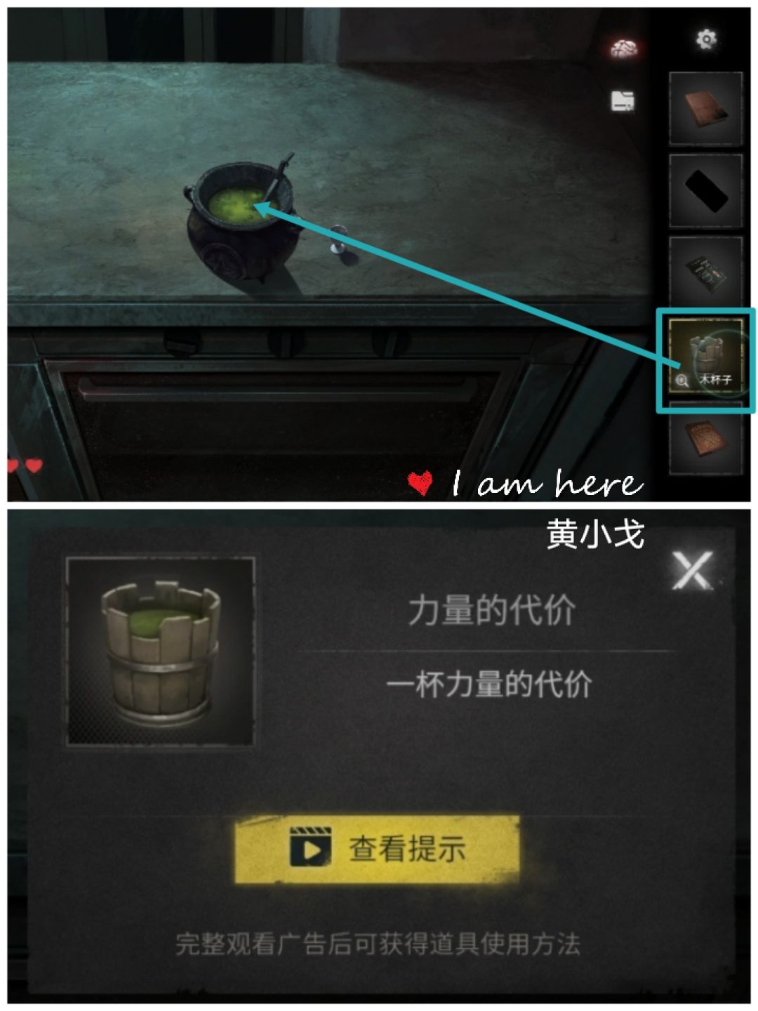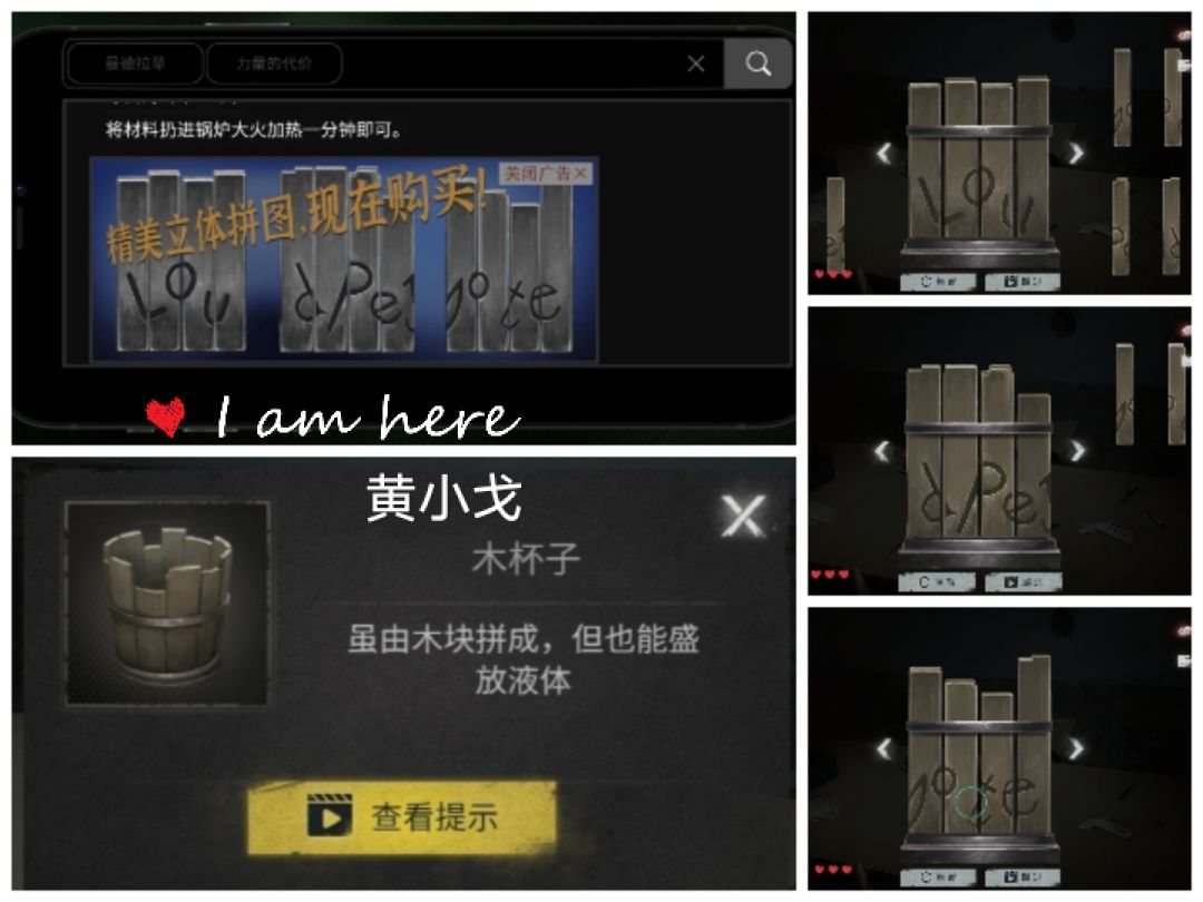13.完成小游戏(提示在用手机搜索“力量的代价”需要的材料下方图片),获得【木杯子】