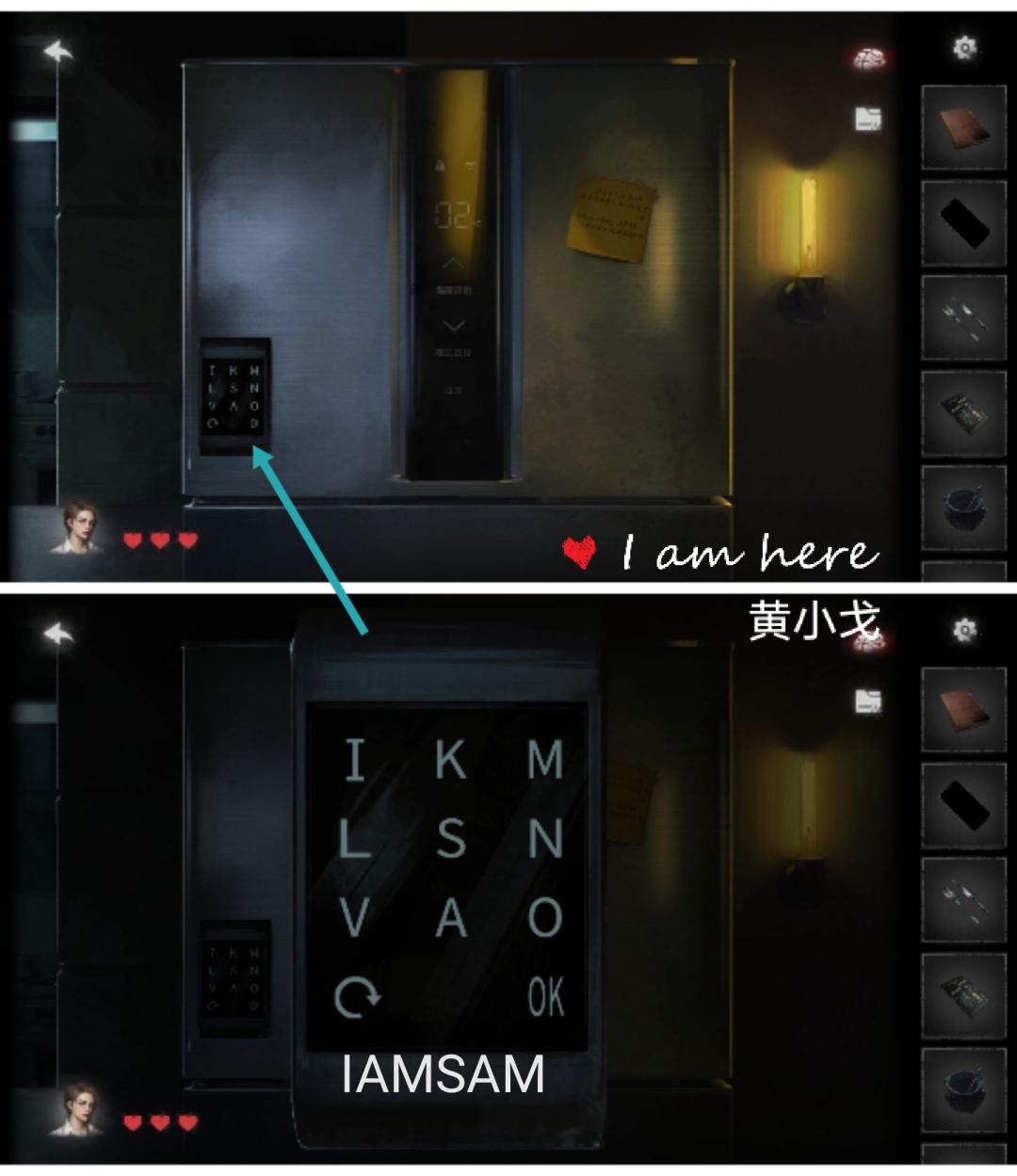 5.(餐厅-里间)点击冰箱,输入密码:IAMSAM