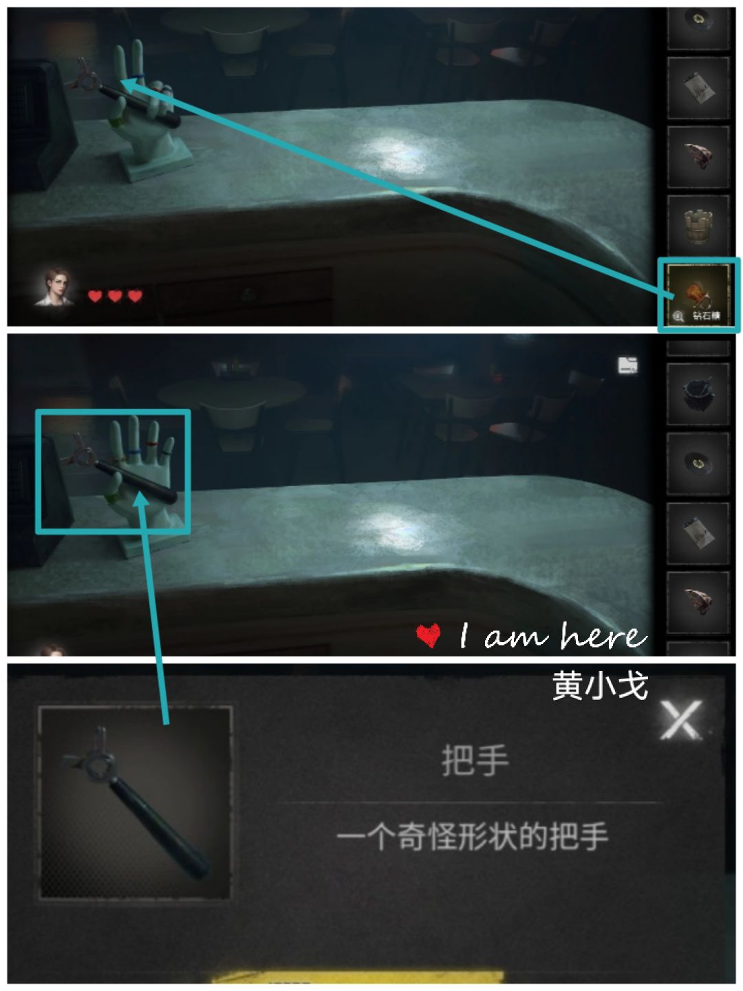 10.点击吧台,把【钻石糖】和【玩具戒指】放入假手中,获得【把手】