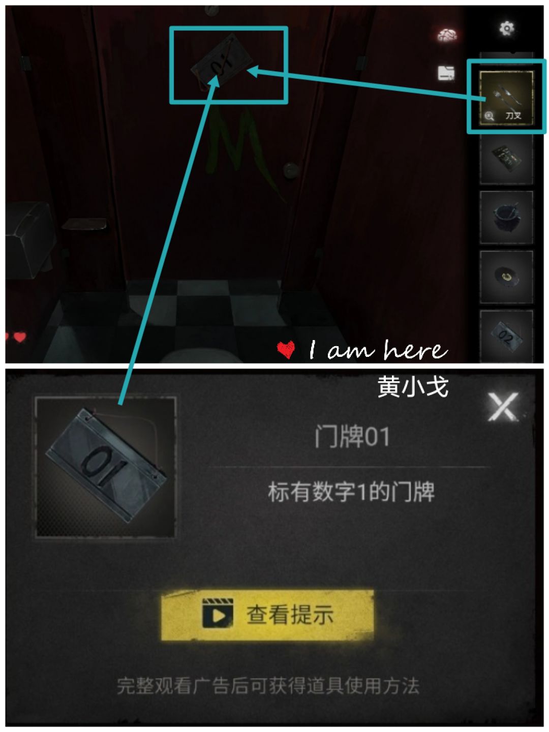 2.进入3号厕所,用【刀叉】取下【门牌01】