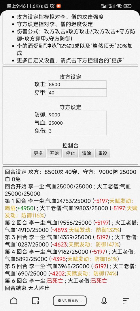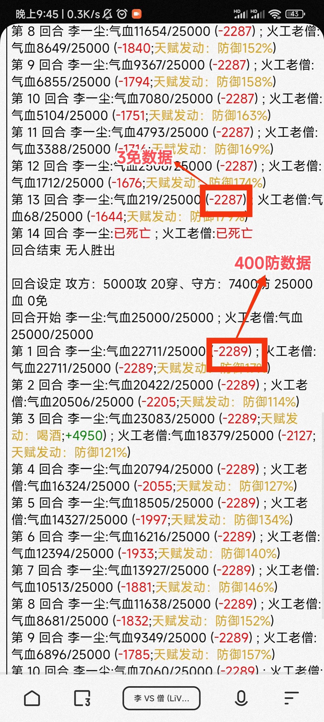 可以直观地看到3免与400防几乎没有差别(伤害偏差都比这2点差距大所以忽略),即3免≈400防,这是前期测试结果