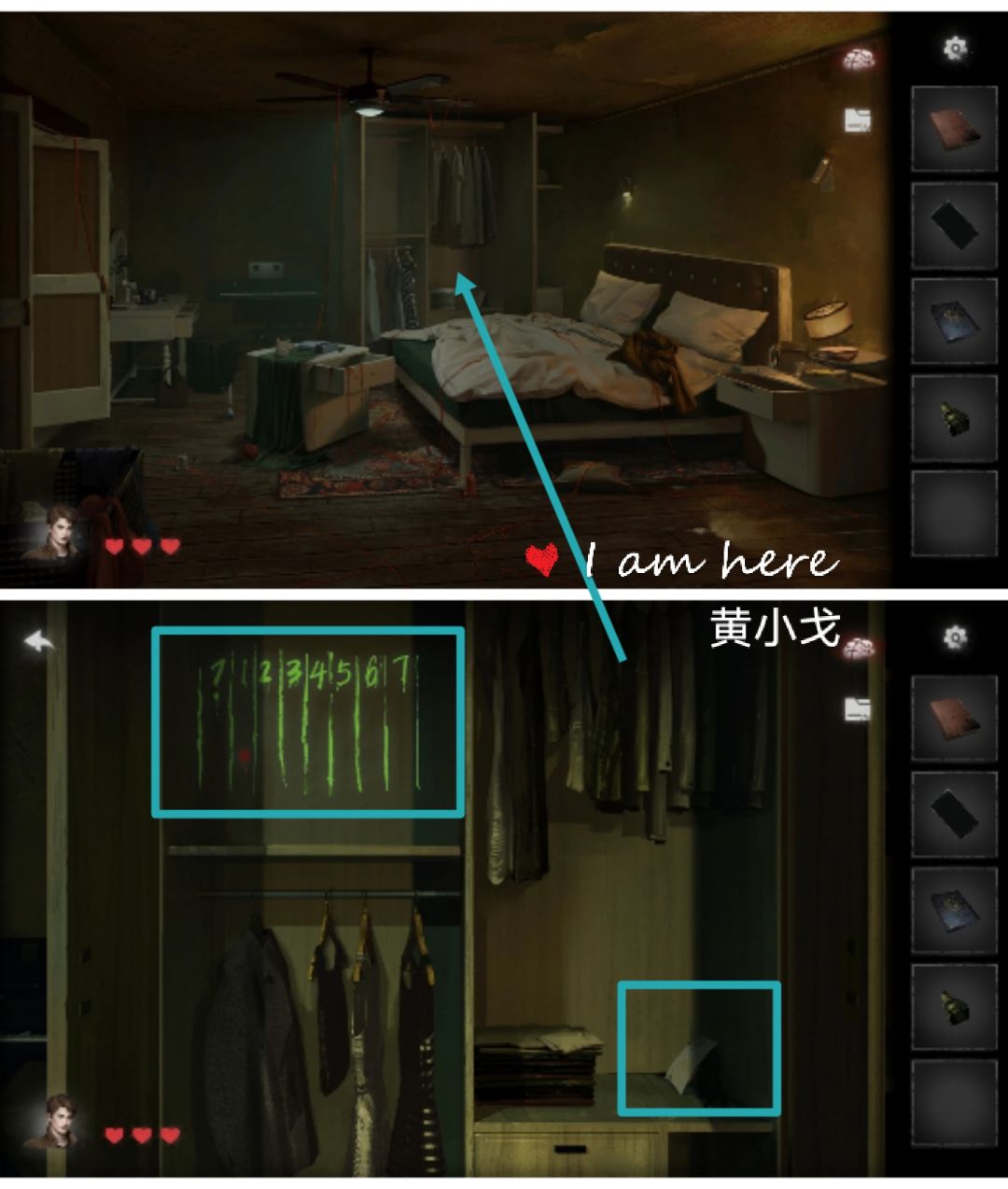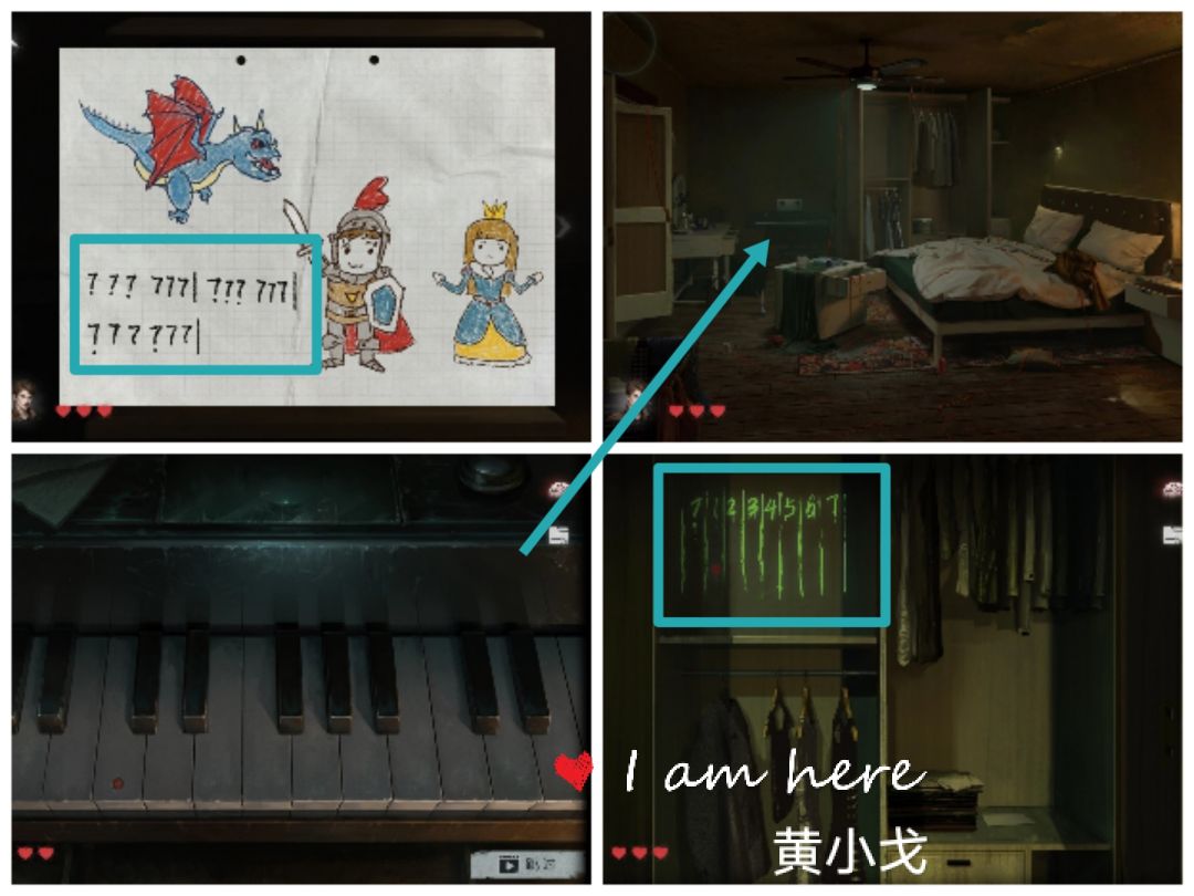 11.(房间)点击钢琴,根据衣柜上的信息和纸张的信息,弹奏钢琴