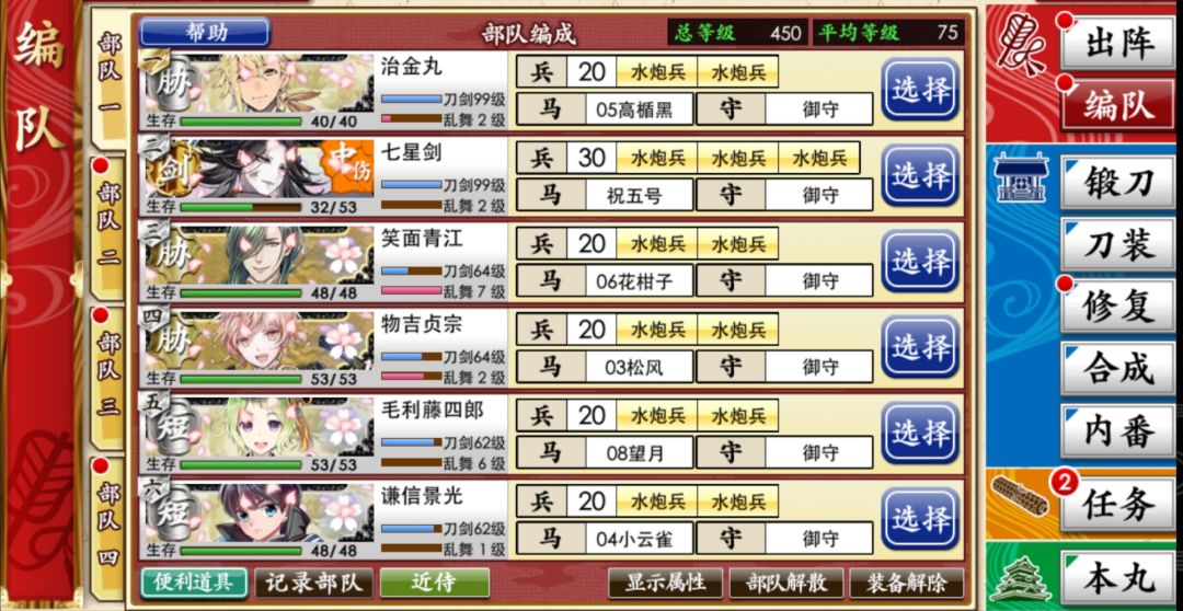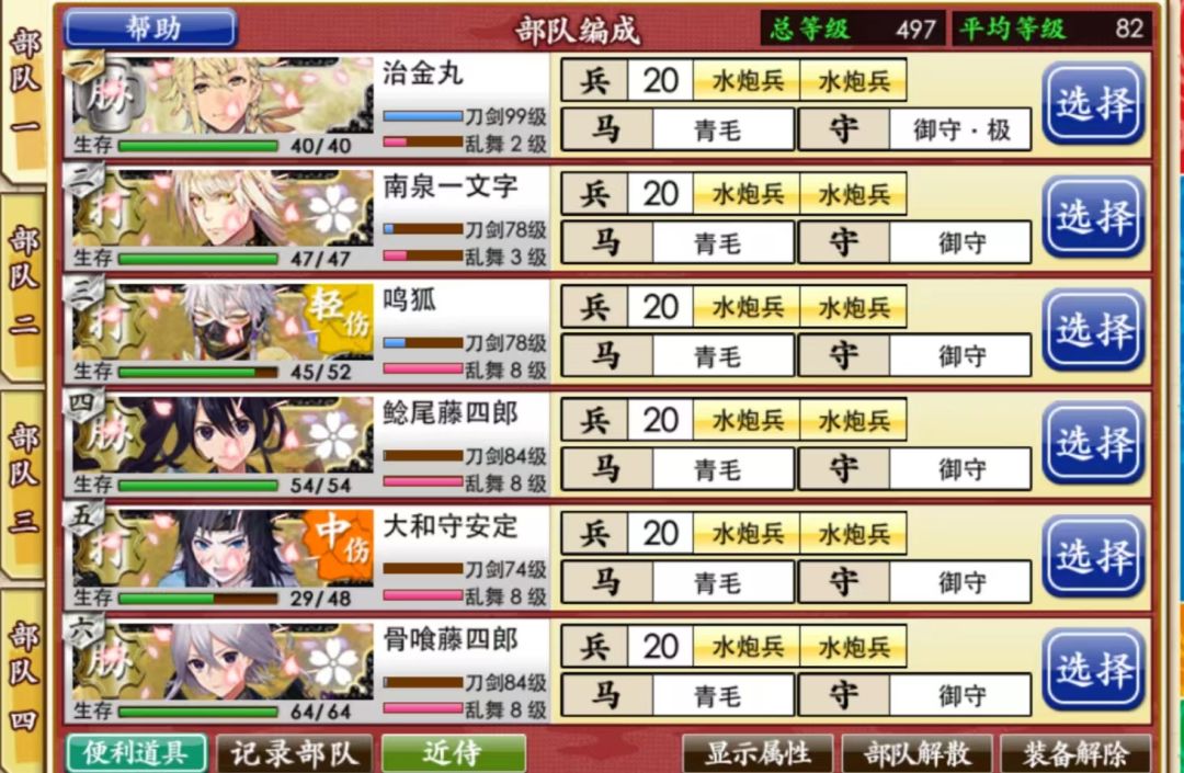 基本A胜,建议多带胁差(我只带两振仅仅是我只有两振未极化的),短刀务必放队长