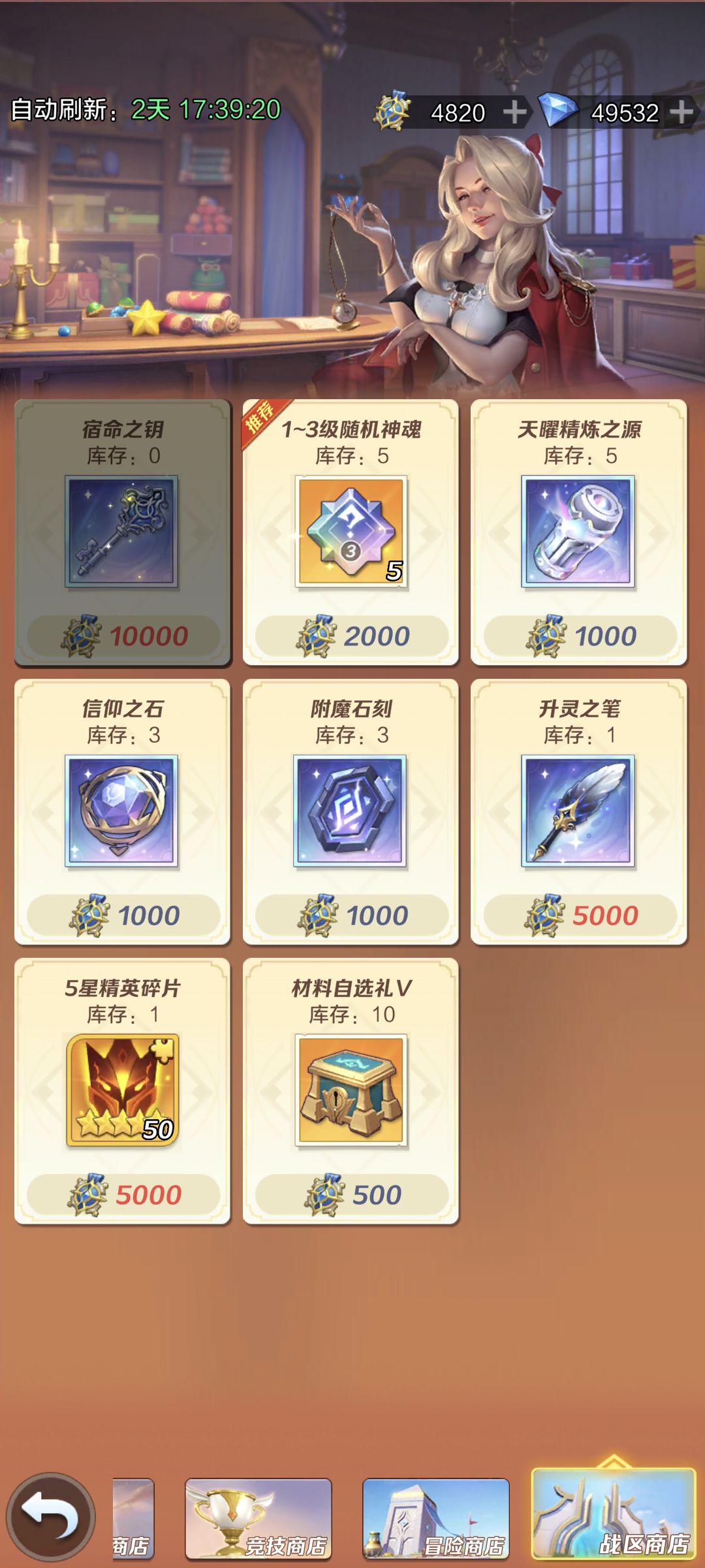 ·公会:前期缺狗粮买狗粮,中期开始屯着买【遗忘沙漏】和【潜能重置石】