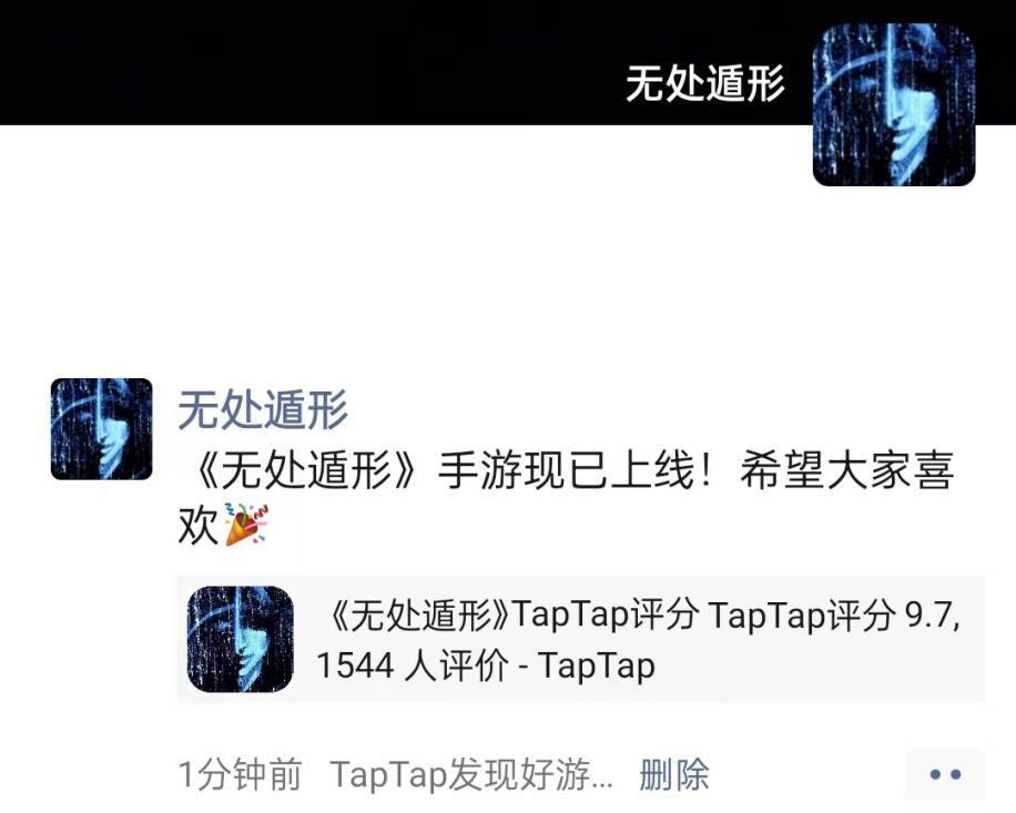 1.点击游戏详情页右上角-分享,根据下图所示,分享《无处遁形》和任意祝福语至任一个人社交媒体账号后,截取截图。(注意:分享到官方游戏群内无效)