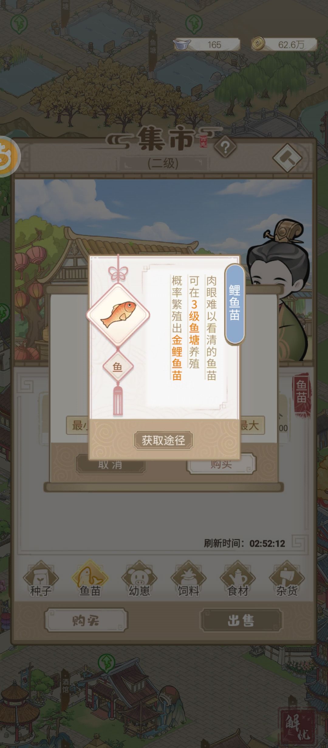 鱼苗描述三级鱼塘,实际二级就可以。鱼塘描述是二级可以养鲤鱼。